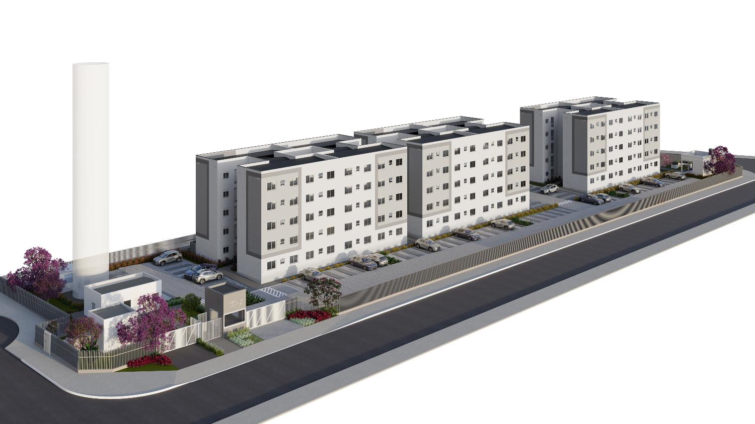 Apartamentos com estrutura em paredes de concreto moldadas no local, garantindo segurança e durabilidade.